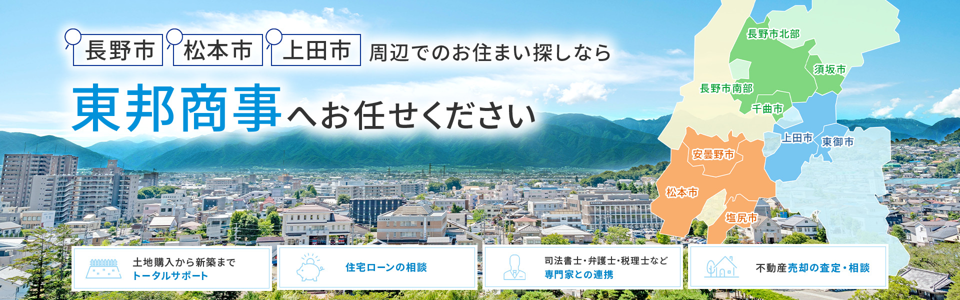 東邦商事株式会社は、長野市・松本市・上田市を中心に不動産売買・土地分譲を行う地域密着型の不動産会社です。